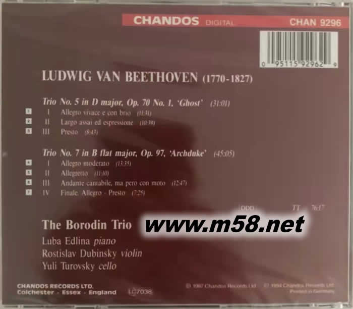 貝多芬鋼琴三重奏BEETHOVEN PIANO TRIOS OP.70 NO.1 GHOST(鋼琴、小提琴、大提琴)(m58.net) THE BORODIN TRIO LUBA EDLINA 鋼琴 ROSTISLAV DUBINSKY 小提琴 YULI TUROVSKY 大提琴