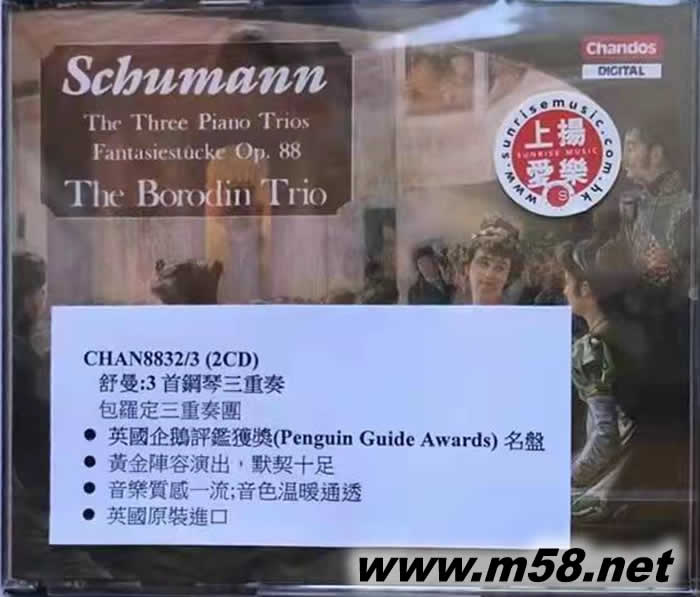 Schumann: The 3 Piano Trios/ Fantasiestucke 舒曼:3首鋼琴三重奏(鋼琴、小提琴、大提琴)(m58.net) THE BORODIN TRIO LUBA EDLINA 鋼琴 ROSTISLAV DUBINSKY 小提琴 YULI TUROVSKY 大提琴 英國企鵝評鑑獲獎(Penguin Guide Awards) 名盤 黃金陣容演出,默契十足 音樂質(zhì)感一流;音色溫暖通透