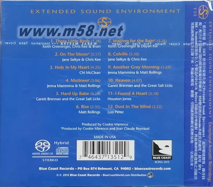 01. Keith Greeninger, Chris Kee & Brain - Three Little Birds 02. Jane Selkye & Chris Kee - On The Moon 03. Chi McClean - Hole in My Heart 04. Jenna Mammina & Matt Rollings - Mutineer 05. Garett Brennan and the Great Salt Licks - Hard Up Babe 06. Matt Rollings - Rise 07. Keith Greeninger & Dayan Kai - Waiting for the Rain 08. Jane Selkye & Chris Kee - Colville 09. Jenna Mammina & Matt Rollings - Another Grey Morning 10. Garett Brennan and the Great Salt Licks - Heaven 11. Houston Jones - I Found A Heart 12. Luis Perez - Dust In The Wind