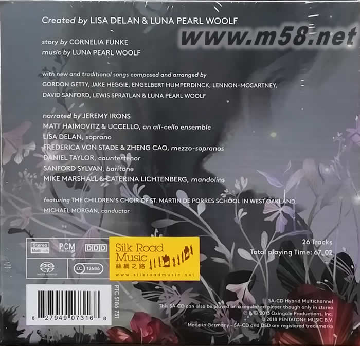 音樂圖書 天使的心 Angel Heart, a music storybook SACD(m58.net) narrated by Jeremy Irons、 Matt Haimovitz & Uccello, an all-cello ensemble、Lisa Delan (soprano)、Frederica Von Stade & Zheng Cao (mezzo-sopranos)、 Daniel Taylor (countertenor)、Sanford Sylvan (baritone)、 Mike Marshall & Caterina Lichtenberg (mandolins)