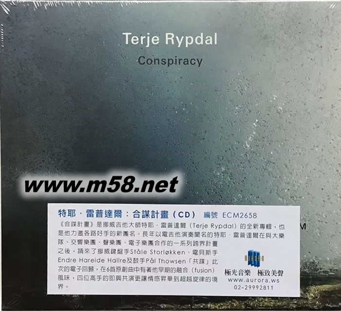 Conspiracy 合謀計畫(吉它、鼓、電子樂)(m58.net) Terje Rypdal - Electric Guitar Ståle Storløkken - Keyboards Endre Hareide Hallre - Fretless Bass, Fender Precision Pål Thowsen - Drums, Percussion 《合謀計畫》是挪威吉他大師特耶.雷普達爾(Terje Rypdal)的全新專輯,也是他力邀各路好手的新團名。長年以電吉他演奏聞名的特耶.雷普達爾在與大樂隊、交響樂團、聲樂團、電子樂團合作的一系列跨界計畫之后,請來了挪威鍵盤手Ståle Storløkken、電貝斯手Endre Hareide Hallre及鼓手Pål Thowsen「共謀」此次的電子回歸,在6首原創(chuàng)曲中有著他早期的融合(fusion)風味,四位高手的即興共演更讓情感昇華到超越旋律的境界。