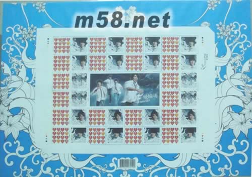 飛輪海限量紀念版郵票B款(深藍)(m58.net) 飛輪海圖案的21枚 心形圖案的20枚 共計41枚 每張郵票尺寸約:3*3CM 平面載體尺寸:42*27CM