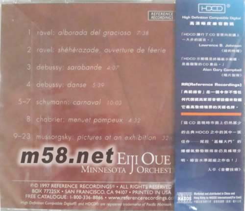 RR的錄音張張出彩,本片亦是如此。大植英次指揮明尼蘇達管弦樂團演奏的拉威爾、穆索爾斯基等多位名家名作,樂章的強對造句感覺特別強烈,明尼蘇達管弦團的銅管樂組火辣有勢,你可以清楚聽見“大植英次”在大爆棚樂段來臨之前所營造一浪高於一浪的懾人氣勢,心情不期然地崩緊來等待驚天動地一刻的來臨。到高潮迸發之際,所有樂器以最強音的姿態奏出最強勁的音章。Amati毫不費勁地把樂團的所有訊息非常清晰,沒有絲毫紊亂地釋放出來,絕對是超級素質的一次演繹。