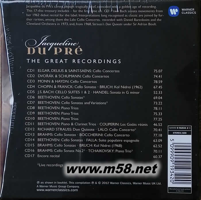 JACQUELINE DU PRE THE COMPLETE EMI RECORDINGS 杜普蕾/EMI錄音全紀錄(17CD套裝)套裝背面圖片