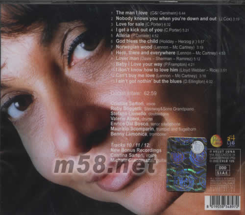 1.THE MAN L LOVE (G&L GERSHWIN) 2.NOBODY KNOWS YOU WHEN YOU'RE DOWN AND OUT(J.COX) 3.LOVE FOR SALE(C.PORTER) 4.L GET A KICK OUT OF YOU(C.PORTER) 5.ALLERIA(P.DANIELE) 6.GOD BLESS THE CHILD(HOLIDAY-HERZOG JR) 7.NORWEGIAN WOOD(LENNON-MC CARTNEY) 8.HERE,THERE AND EVERYWHERE(LENNON-MC CARTNEY) 9.LOVER MAN(DAVIS-SHERMAN-RAMIREZ) 10.BABY I LOVE YOUR WAY(P.FRAMPTON) 11.I DON'T KNOW HOW TO LOVE HIM(LIOYD WEBBER-RICE) 12.CAN'T BUY ME LOVE (LENNON-MC CARTNEY) 13.L AIN'T GOT NOTHIN 'BUT THE BLUES (D.ELLINGTON)