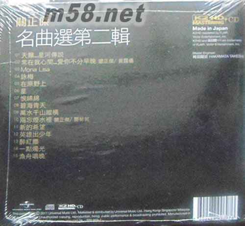 關正杰名曲選第二輯(環球K2HD黑色封面)(m58.net) 劃時代頂級發燒母版處理 將100KHz寬頻帶/24bit音頻信息載入 音色更接近模擬(Analogue)聲效 強勁動態音效中橫溢出細致韻味 ***日本Memory Tech壓製*** 【K2HD】CHINESE - 10TITLES 3RD PHASE