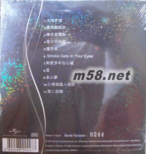 1. 大地恩情 2. 愛是難避免 3. 緣份莫攔我 4. 落日在何處 5. 僅存者 6. Smoke Gets In Your Eyes 7. 熱愛多年的心藏 8. 星 9. 金山夢 10. 心境相遠人相近 11. 第二故鄉