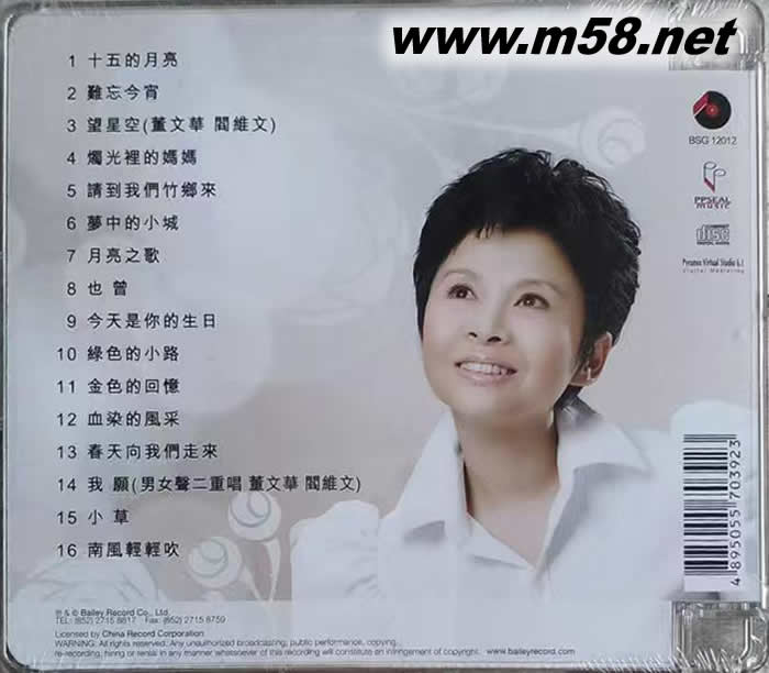 1. 十五的月亮 2. 難忘今宵 3. 望星空 (董文華 閻維文) 4. 燭光里的媽媽 5. 請到我們竹鄉來 6. 夢中的小城 7. 月亮之歌 8. 也曾 9. 今天是你的生日 10. 綠色的小路 11. 金色的回憶 12. 血染的風采 13. 春天向我們走來 14. 我愿(男女聲二重唱 董文華 閻維文) 15. 小草 16. 南風輕輕吹