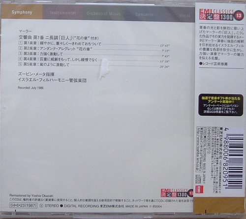 MAHLAR 交響曲第一番巨人 24BIT(日本版)專輯背面圖片