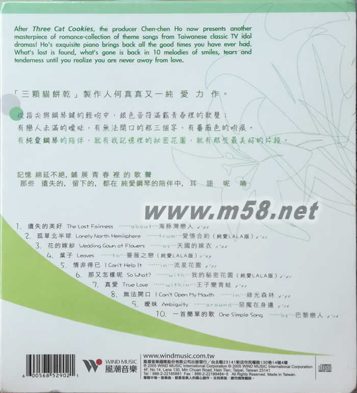 1. 遺失的美好 (海豚灣戀人) 2. 孤單北半球 (愛情合約) 3. 花的嫁紗 (天國的嫁衣) 4. 葉子 (薔薇之戀) 5. 情非得已 (流星花園) 6. 那又怎么樣呢 (我的秘密花園) 7. 真愛 (王子變青蛙) 8. 無法開口 (綠光森林) 9. 曖昧 (惡魔在身邊) 10. 一首簡單的歌 (巴黎戀人)