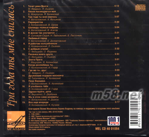 俄羅斯懷念金曲(m58.net) 著名男歌手Mapk Bephec 深情演繹19首俄羅斯懷舊歌曲 100%俄羅斯原味正宗演繹,浪漫四溢 俄羅斯原裝進口;原廠母帶精心轉制