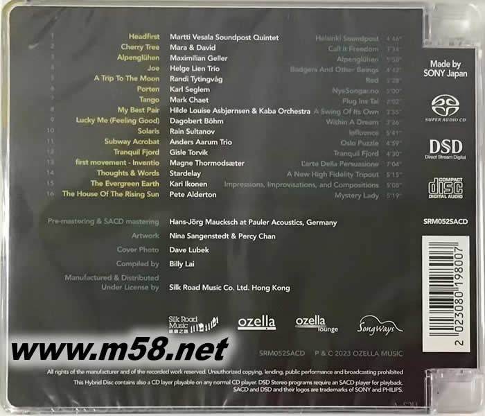 價格為估,以實到貨為準! 鑑賞新領域 On To New Shores Various SACD(m58.net) 發燒女聲、發燒男聲、發燒音樂 1. 出生于德國一個充滿音樂氣氛與傳統的城市曼海姆(Mannheim),戴戈貝治‧伯姆(Dagobert Böhm)自幼便受週圍環境的感染,對音樂特別鍾愛。除了接受正統音樂教育外,他亦是一位出色的結他手。在他的青少年時期,曾醉心研究原音小提琴的制造和處理,同時對東印度的古典樂曲產生濃厚的興趣,基于上述原因,他制造了特為自己演奏而用的西塔琴(sitar),這象徵了他對美好的音樂,無論是東方或是西方,古時或現代,不同的文族文化背景,他都會欣然接受和涉獵,將世界不同角落美好的聲音加以宣揚和推廣,這亦是他于一九九九年成立“奧賽勒唱片公司(Ozella Music)”的主要原因。