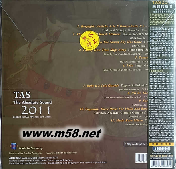 TAS 絕對的聲音LP 2011 180g 33RPM LP 黑膠 限量版專輯背面圖片