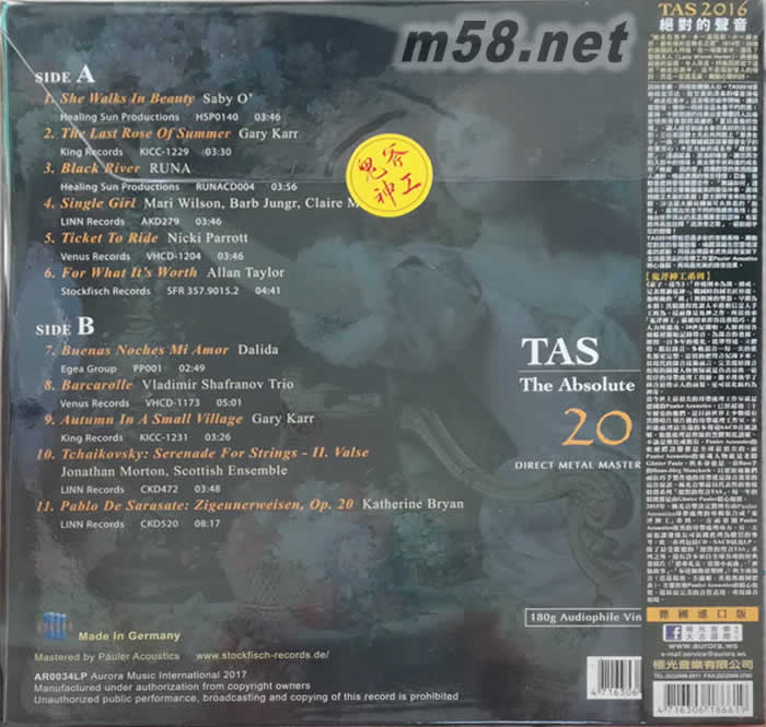 TAS 絕對(duì)的聲音LP 2016 THE ABSOLUTE SOUND 黑膠(鬼斧神工 劉漢盛推介)專輯背面圖片