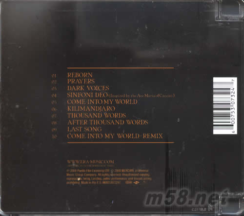 1.REBORN 2.PRAYERS 3.DARK VOICES 4.SINFONI DEO 5.COME INTO MY WORLD 6.KILIMANDJARO 7.THOUSAND WORDS 8.AFTER THOUSAND WORDS 9.LAST SONG 10.COME INTO MY WORLD-REMIX