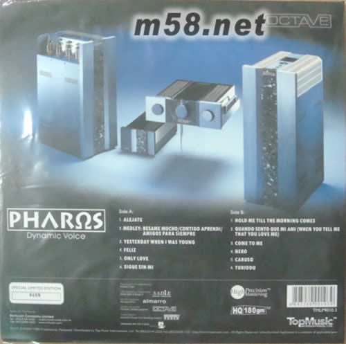 PHAROS 動態(tài)靚聲皇 DYNAMIC VOICE(黑膠)(m58.net) 《動態(tài)美聲》(Pharos:Dynamic Voice)是德國發(fā)燒大廠“Octave”邀請美國男高音Marc Canto和西班牙歌手William為“Octave”推出的人聲測試碟,由香港天樂唱片制作發(fā)行。 Marc Canto與William以英語、意大利語及西班牙語演繹了12首世界經(jīng)典情歌。Marc Canto聲音高亢飽滿,充滿戲劇性,而William的聲線清晰、熱情,在這個專輯中,兩人以真摰感情詮釋每首歌,感染力十足。 《動態(tài)美聲》專輯全程在荷蘭的MSB錄音室制作,采用頂級的SADiE DSD Series 5 數(shù)位混音工作站作后期母帶處理,無論是音樂的可聽性還是錄音的品質(zhì)都屬上乘。