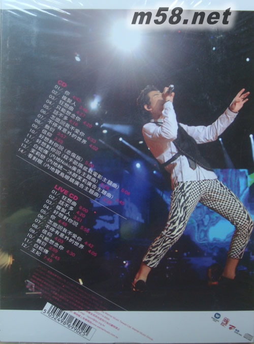 CD 01. 你 You 02. 復(fù)制人 Clone 03. 狂想曲 Wild Dreams 04. 只能想念你 Miss you forever 05. 話不多 Quiet 06. 怎麼說(shuō)我不愛(ài)你 How to say I don’t love you 07. 不停有意外的世界 The Unexpectable World 08. 敷衍 Perfunctoriness 09. 信仰 Faith 10. 好想對(duì)你說(shuō) (悲傷版) I really want to say (sad version) 11. 好想對(duì)你說(shuō) (殺手歐陽(yáng)盆栽電影主題曲) I really want to say 12. 白蛇傳 (內(nèi)地Nokia廣告主題曲) Tale of the White Snake 13. 茉莉戀 (內(nèi)地統(tǒng)一冰醇茉莉廣告主題曲) Jasmine Love 14. 看對(duì)眼 (內(nèi)地寶島眼鏡廣告主題曲) Love at the first sight Live CD 01. 狂想曲 02. 話不多 03. 復(fù)制人 04. 好想對(duì)你說(shuō) 05. 你 06. 怎麼說(shuō)我不愛(ài)你 07. 不停有意外的世界 08. 信仰 09. 只能想念你 10. 敷衍 11. 白蛇傳 12. 王妃