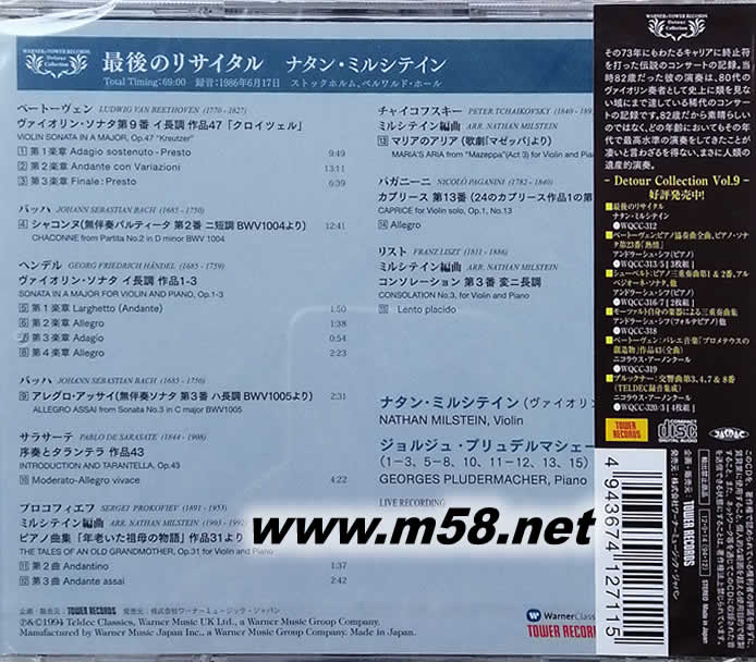 米爾斯坦MILSTEIN THE LAST RECITAL 小提琴最后獨(dú)奏會(huì) 日本版(m58.net)
