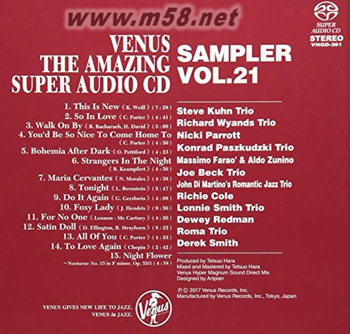 夢幻發燒試碟王 21 VENUS THE AMAZING Super Audio CD SAMPLER VOL.21 (限量單層SACD)專輯背面圖片