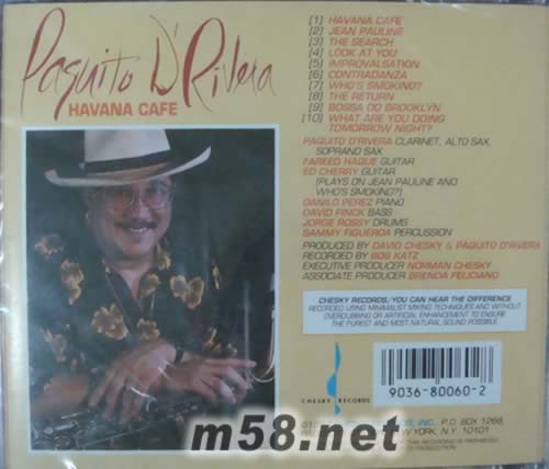 哈瓦那咖啡廳HAVANA CAFE(m58.net) 奎多德里維拉(Paquito D’rivera)這位來自古巴、享譽全球的吹管巨匠正和他多年的合作搭擋卡洛斯弗朗契帝追溯前輩腳步并改寫過去輝煌的歷史。 帕奎多是首波古巴音樂家進軍美國斬獲成功的民族英雄,其綳張的熱情、飽滿的中氣和突顯變異吹奏方式,讓他成為走在時代尖端的絕佳武器。 1989年加盟Chesky之后,重新對拉丁美洲傳統波烈露舞曲(Bolero)、華爾滋、曼波(Mambo)與Bossa Nova節奏的探求,并與咆哮樂派的自由即興特質相互混合,成為一種兼具旋律與節奏美感的拉丁爵士?!旱芨纭⒌芨纭唬ā癟ico! Tico!” JD34)、『哈瓦那咖啡屋』(“Havana Cafe” JD80)兩張專輯,企鵝爵士評鑑均給予三顆星高度評價,1997年充滿懷舊色彩的專輯『古巴素描』(“Portraits Of Cuba” JD145)以優異的團隊演奏默契與編曲,贏得葛萊美獎『最佳拉丁爵士演奏獎』,是第三世界爵士潮流中最著名且最重要的領導人。