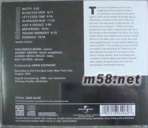Misterioso爵士鋼琴四重奏專輯背面圖片
