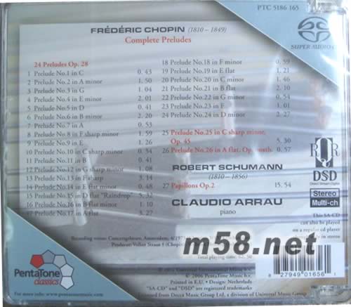 肖邦:24首前奏曲&舒曼:鋼琴套曲 蝴蝶 SACD專輯背面圖片