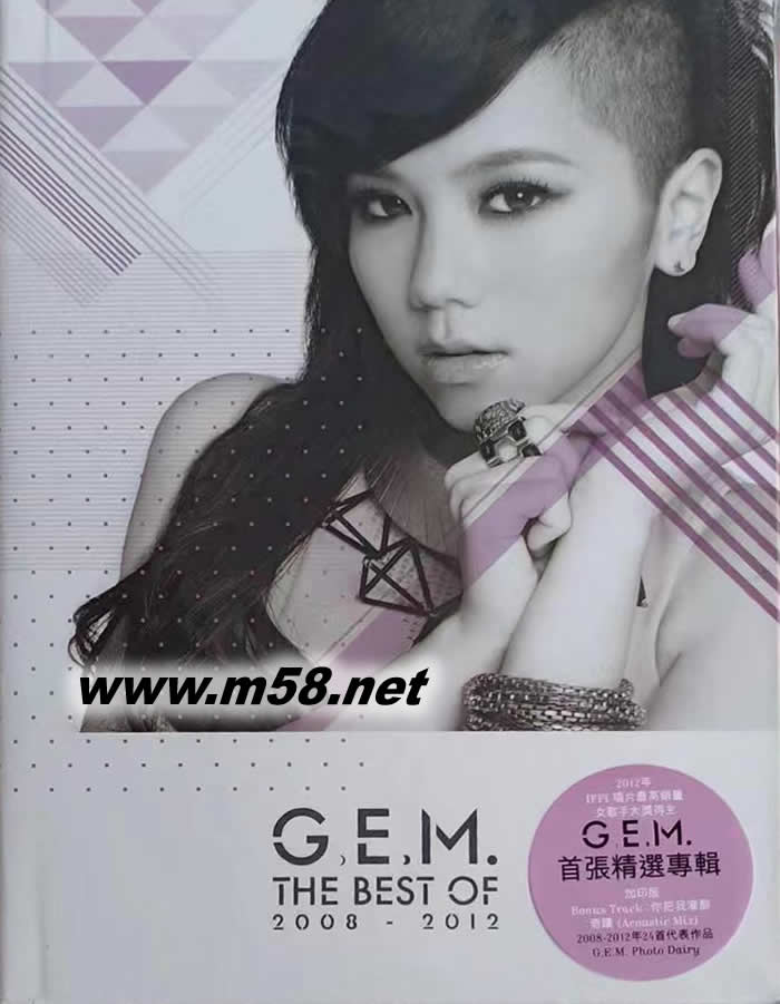The Best Of 2008-2012 (第二版)(m58.net) 2012年鄧紫棋(G.E.M.)憑《Xposed》不但獲IFPI香港唱片銷量大獎全年最高銷量國語唱片,并首次封碟后,擠身為全年最高銷量本地女歌手之列。2008年出道至今,G.E.M.以唱功和創作的實力贏得業界和樂迷的支持,她的首張精選《The Best Of 2008-2012》收錄了從首張專輯《G.E.M.》 至第四張專輯《Xposed》共24首精選歌,包括當年參賽歌曲「睡公主」、成名作「等一個他」、「G.E.M.(Get Everybody Moving)」、「Where Did U Go」、「A.I.N.Y」和「Someday I'll Fly」,特別收錄兩首從未發行演唱會版本歌曲「情人」和「A.I.N.Y」。 第二版追加收錄兩首從未發行歌曲「你把我灌醉」和「奇跡」(Acoustic Mix)。