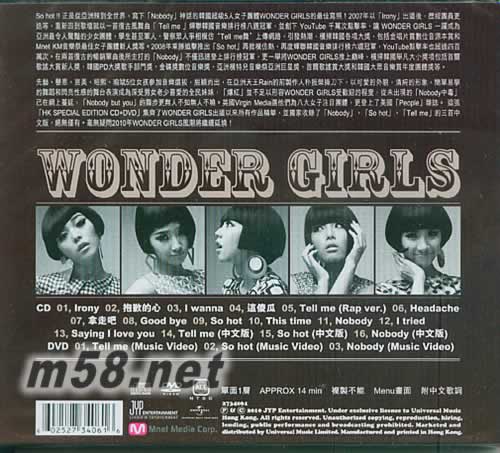 CD: 1. Irony 2. 抱歉的心 3. I wanna 4. 這傻瓜 5. Tell me 6. Headache 7. 拿走吧 8. Good bye 9. So hot 10. This time 11. Nobody 12. I tried 13. Saying I love you 14. Tell me(中文版) 15. So hot(中文版) 16. Nobody(中文版) DVD 1.Nobody 2.Tell Me 3.So Hot