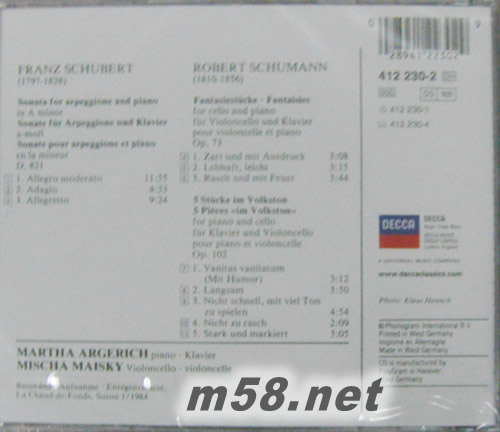 舒伯特:A小調(diào)吉他形大提琴與鋼琴奏鳴曲(m58.net) 舒伯特:吉他形大提琴奏鳴曲;舒曼:OP.73幻想曲;民謠小品/大提琴家米沙·麥斯基,鋼琴家阿格里奇