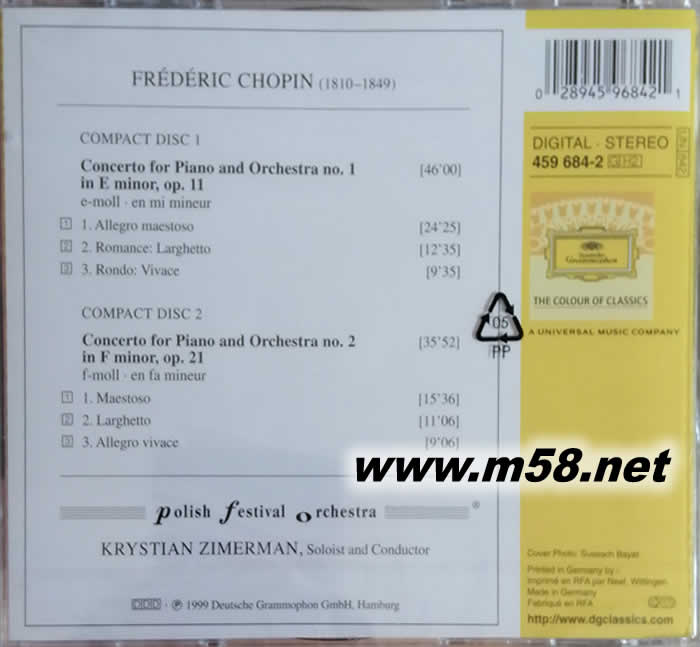 肖邦:No.1 & 2鋼琴協(xié)奏曲CHOPIN:P'NO CTOS NO.1,2(古典愛好者必備)專輯背面圖片