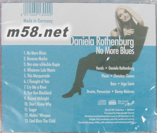 NO MORE BLUES(m58.net) 女高音 《丹妮拉·羅滕寶:不再藍(lán)調(diào)》中德國最具實力的爵士女歌手丹妮拉·羅滕寶(Daniela Rothenburg)以嘹亮動人的聲線,充滿感情的演繹等迷倒萬千樂迷,成為歌手爵士樂界最炙手可熱的女歌手之一,最新專輯重新演繹多首不巧名曲,包括Besame Mucho ,This masqerade, Cra me a river ,Don’t know why 等13首作品。