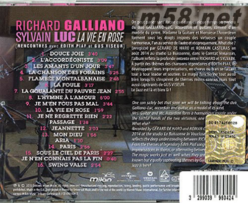 LA VIE EN ROSE (HOMMAGE TO EDITH PIAF)玫瑰人生: 理查蓋利安諾 (手風琴), 席爾維.路 (結他)專輯背面圖片