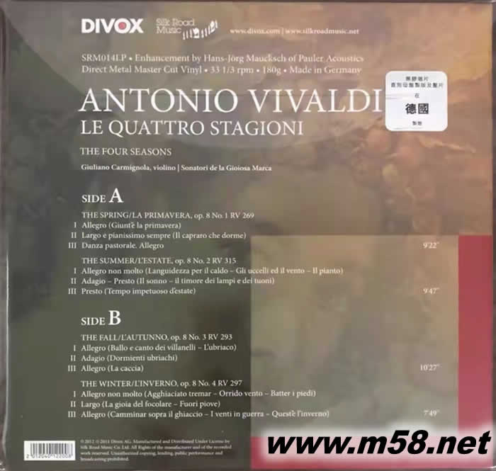 VIDALDI Le Quattro Stagioni 維瓦爾第:古樂四季180g 33RPM LP 黑膠專輯背面圖片