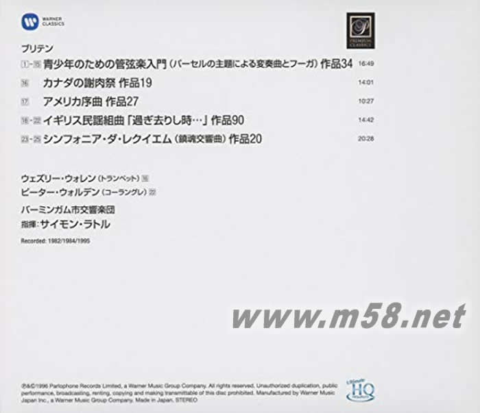 所屬歌手:   [Benjamin Britten] [BIRMINGHAM SYMPHONY ORCHESTR伯明翰交響樂團] [日本版系列發燒碟]