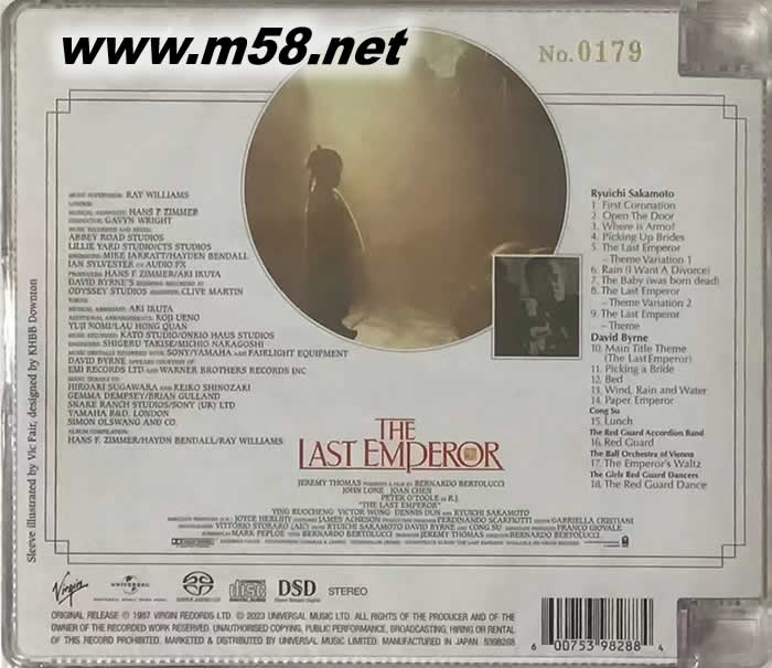 THE LAST EMPEROR末代皇帝 電影原聲碟 SACD專輯背面圖片