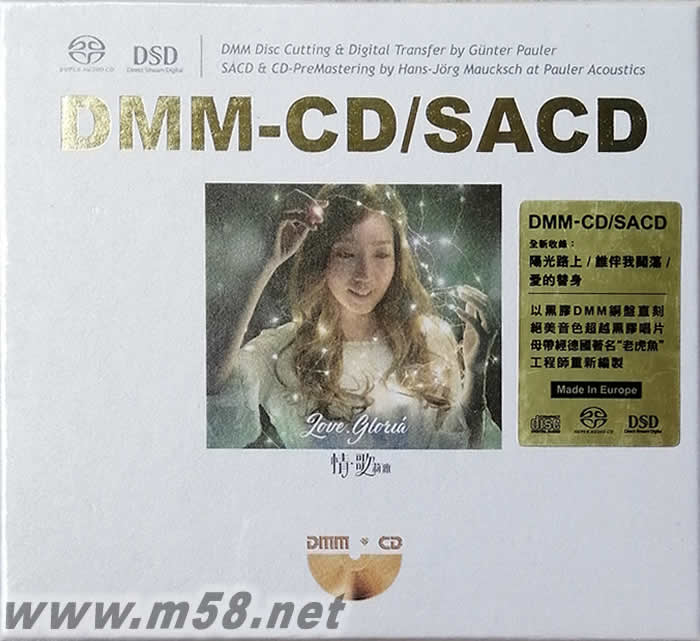 LOVE GLORIA 情歌 DMMSACD(m58.net) 清新靚聲‧銷量保証 HiFi女神歌莉雅第8張個(gè)人發(fā)燒大碟 以黑膠DMM銅盤(pán)直刻絕美音色超越黑膠唱片母帶經(jīng)德國(guó)著名“老虎魚(yú)”工程師重新編制。