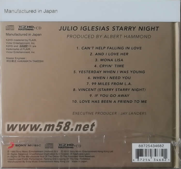 Starry Night (K2HD)(m58.net) 高音質(zhì)CD 日本壓制 優(yōu)質(zhì)之選 K2HD Mastering 藉著母盤處理工程師的音樂觸覺和技術, 以K2 High Definition編碼技術 將原本傾注在母盤音源的樂曲魅力以高達100kHz寬頻帶 和24bit高比特的音頻訊息裝載到各媒體的【K2HD MASTERING】. 在CD mastering上通過把192kHz 24bit的訊息裝 載至44.1kHz 16bit的CD母盤中 是實現(xiàn)了到現(xiàn)在為止從沒有過的高音質(zhì)化CD