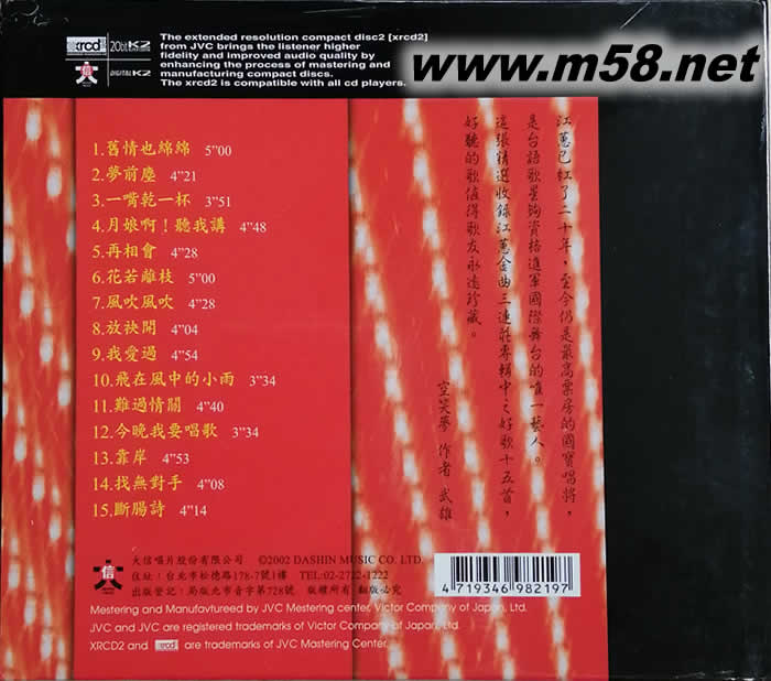 江蕙 精選黃金典藏版2 XRCD專輯背面圖片