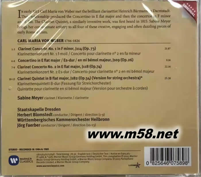 單簧管女皇 - WEBER 單簧管協(xié)奏曲集 韋伯單簧管協(xié)奏曲專輯背面圖片