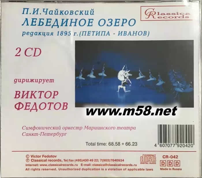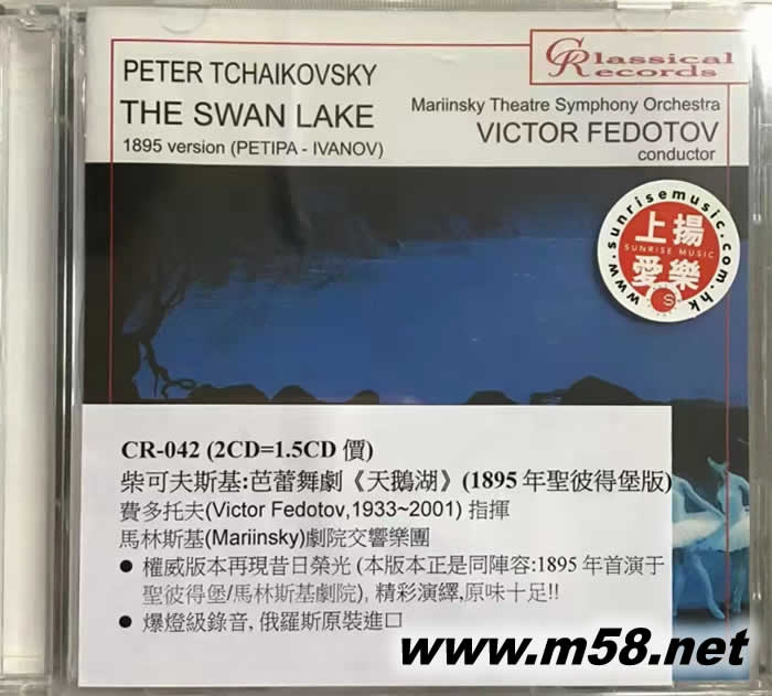 Tchaikovsky: Swan Lake 1895 ver. 柴可夫斯基:芭蕾舞劇《天鵝湖》(1895年圣彼得堡版)(m58.net) Victor Fedotov 費多托夫, Mariinsky Theatre Symphony Orchestra 馬林斯基劇院交響樂團 權威版本再現(本修訂版首演於1895年 圣彼得堡/馬林斯基劇院) , 精彩演繹,原味十足! 爆燈級錄音, 俄羅斯原裝進口