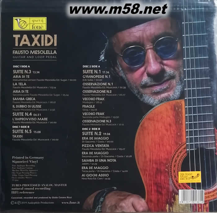 浮士托.梅索萊拉 [旅程] Fausto Mesolella [Taxidi] 黑膠(m58.net) 2016年10月著名意大利結(jié)他演奏家浮士托.梅索萊拉(Fausto Mesolella)匯同傳奇錄師里茲(Giulio Cesare Ricci)於意大利塞美芳蒂史科圖古堡酒店(Hotel II Castello - Palazzo di Scoto di Semifonte)的酒窖內(nèi)進(jìn)行錄音,所得結(jié)果是音效清晰,音像細(xì)致鮮明,堂音飽滿,音質(zhì)真實有勁,聲音更為精準(zhǔn)。 2. 梅索萊拉以其出神入化的指彈技巧情心地演繹五首他嘔心瀝血創(chuàng)作和改編的結(jié)他組曲,血脈相連般的演繹,充滿詩意,音色綻發(fā)著迷人的華彩,將樂曲原來獨(dú)特的風(fēng)貌與神韻及他自己的藝術(shù)和靈魂表達(dá)得淋漓盡致,亦象徵了他一生絢爛的音樂「旅程」。 3. 在專輯內(nèi)梅索萊拉採用木結(jié)他與循環(huán)踏板(loop pedal)演奏但配合得天衣無縫,精致清晰,充滿動力的音質(zhì)由大師級錄音師里茲(Giulio Cesare Ricci)以優(yōu)異技術(shù)和器材配合創(chuàng)造出來,精湛工藝,臻美淬鏈。 4. 專輯分別以SACD,音色清甜,高透明度,音質(zhì)堅實有勁,音場開闊,音像定位明確,是試音必備之選。與及24K金(24K Gold)CD為載體,此載體被認(rèn)為是音訉重播的表現(xiàn)出色準(zhǔn)確,失真率低,聲音純凈自然和真實,是「發(fā)燒」樂迷的寵愛,全球限量496張,彌足珍貴。