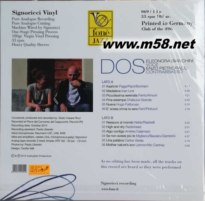 恩佐 皮埃特羅帕里及愛蓮娜 比安切妮 [二](Enzo Pietropaoli & Eleonora Bianchini [Dos]黑膠(m58.net) 意大利殿堂級低音大提琴手 Enzo Pietropaoli 「牛筋」原味十足的現代爵士樂典范示范盤 分別以 及 德國限量珍藏版黑膠唱片 推出