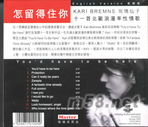 在一眾樂迷及發燒友心中的發燒美聲天后,挪威女歌手KARI BREMNES最新英語專輯“YOU’D HAVE TO BE HERE”創作及演澤十一首全新作品。在充滿北歐浪漫的樂章里突發了KARI一把純如清泉的美聲。開首主題曲“YOU HAVE TO BE HERE”,KARI的歌聲與音樂合奏出軟綿綿的清新感覺。接著“ A FANTASIC TIME ALREADY”以較鮮明的旋律融入在歌聲中,散發出另一番誘人魅力。“WALTZ”是一首近期難得一聽的動人作品,一把能夠軟化人心的美聲是焦點所在。KKV一貫超水準的錄制,突出了如畫的美妙人聲,立體地重現如在目前,簡單的幾件器也見精彩絕倫。