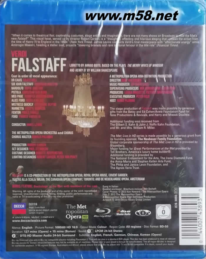 JAMES LEVINE指揮 FALSTAFF 威爾第:法斯塔夫 藍(lán)光BD專輯背面圖片