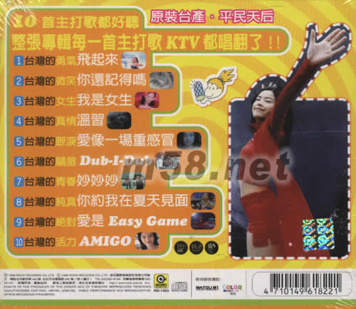 01.臺灣的 勇氣飛起來 02.臺灣的 微笑你還記得嗎 03.臺灣的 女生我是女生 04.臺灣的 真情溫習(xí) 05.臺灣的 眼淚愛像一場重感冒 06.臺灣的 驕傲Dub-I-Dub 07.臺灣的 青春妙妙妙 08.臺灣的 純真你約我在夏天見面 09.臺灣的 絕對海力愛是Easy Game 10.臺灣的 活力AMIGO