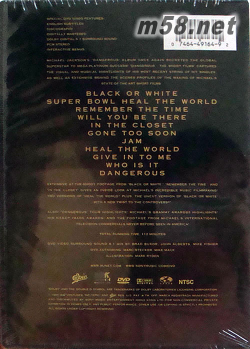 DANGEROUS - THE SHORT FILMS DVD(香港版)專輯背面圖片