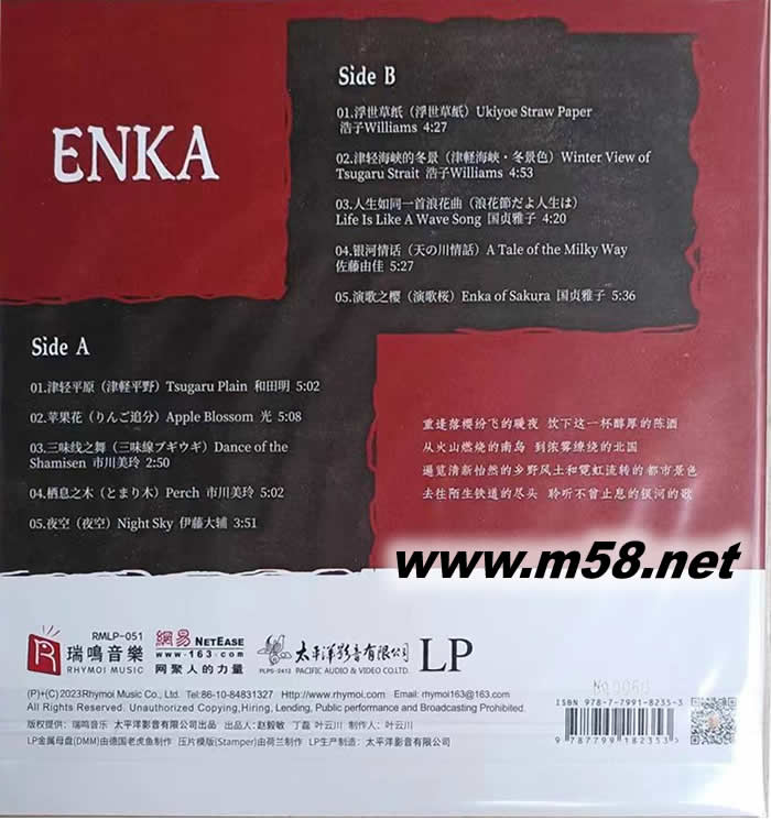 演歌之櫻 180g 33RPM LP 黑膠 限量版專輯背面圖片
