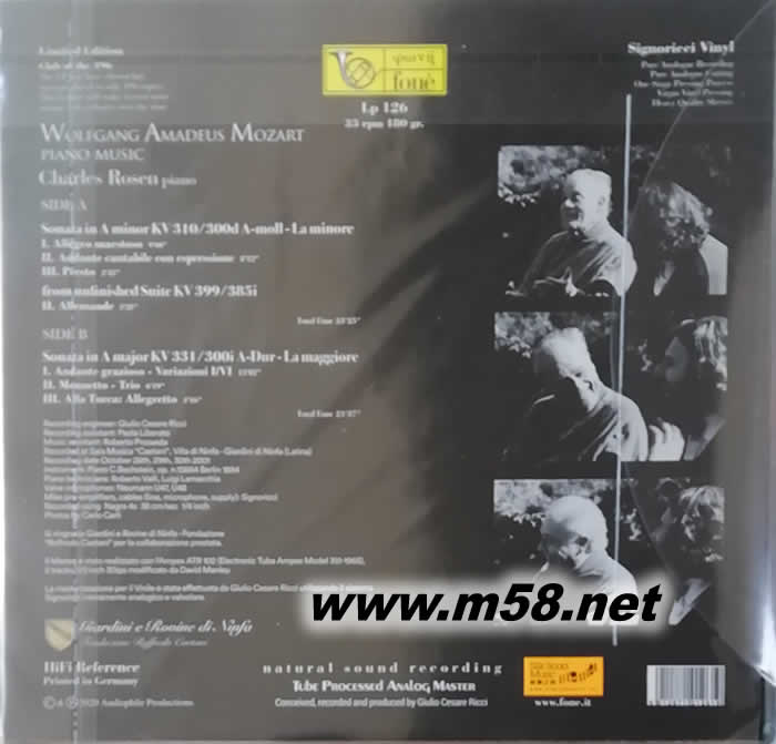5. 殿堂級錄音師里茲(Giulio Cesare Ricci)採用最頂級的錄音器材,精巧的技術,以純模擬方式融合他所創(chuàng)的「里奇制式」(Signoricci)製作,別具個人風格與吸引力,配合以180克, 33 1/3轉黑膠盤為載體,鋼琴琴音更為鏗鏘、自然和真實,美妙的音符隨著交錯的黑白鍵連綿不斷地滲透出來,令人感到心曠神怡。全球發(fā)行限量496張,彌足珍貴。