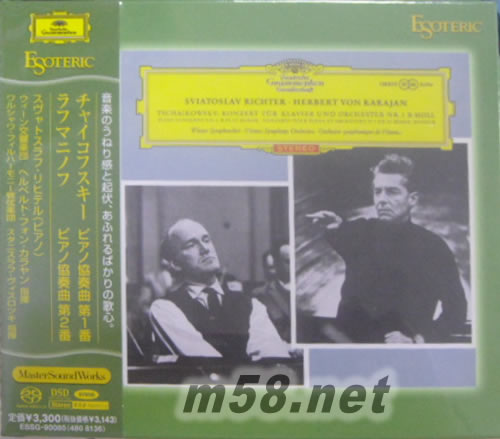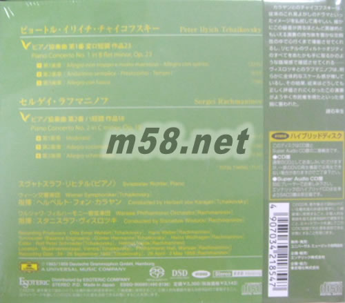 價格為估,以實到貨為準! Piano Concerto No.1 鋼琴協奏曲No.1 Piano Concerto No.2 鋼琴協奏曲No.2(m58.net) 鋼琴:斯維亞托斯拉夫.•特奧菲洛維奇(Sviatoslav Richter) [柴可夫斯基]:維也納交響樂團 (Wiener Symphoniker) 指揮:赫伯特.•馮.•卡拉揚 (Herbert von Karajan) [拉赫瑪尼諾夫]:華沙國家愛樂樂團 (Warsaw National Phi lharmonic O rchestra) 指揮:Stanislaw Wislocki