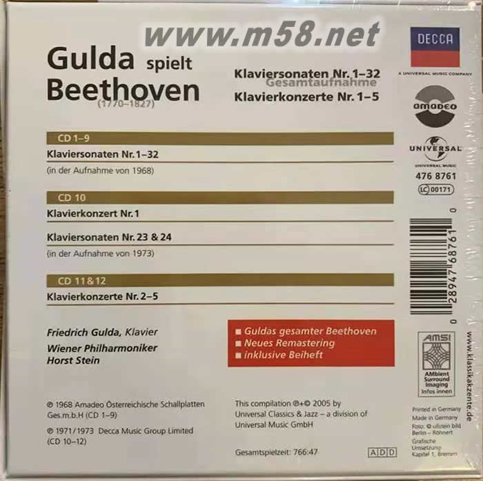 Beethoven: Piano Sonata 1 - 32, Piano Concertos 1 - 5 鋼協12CD套裝專輯背面圖片